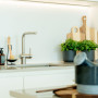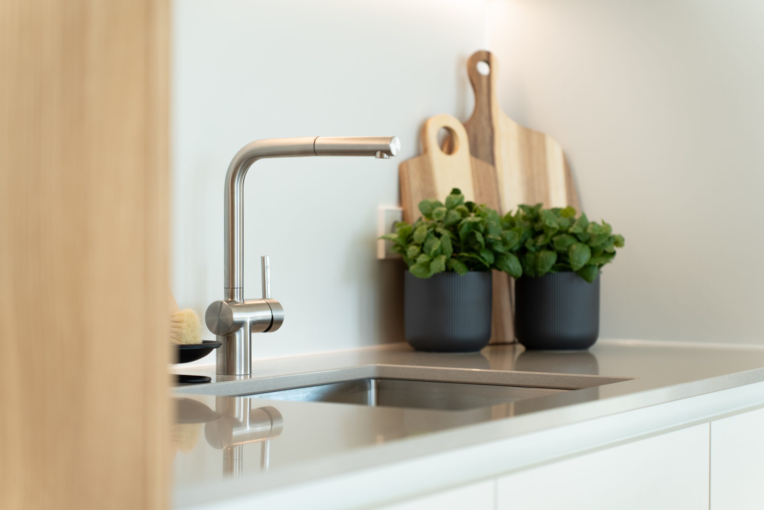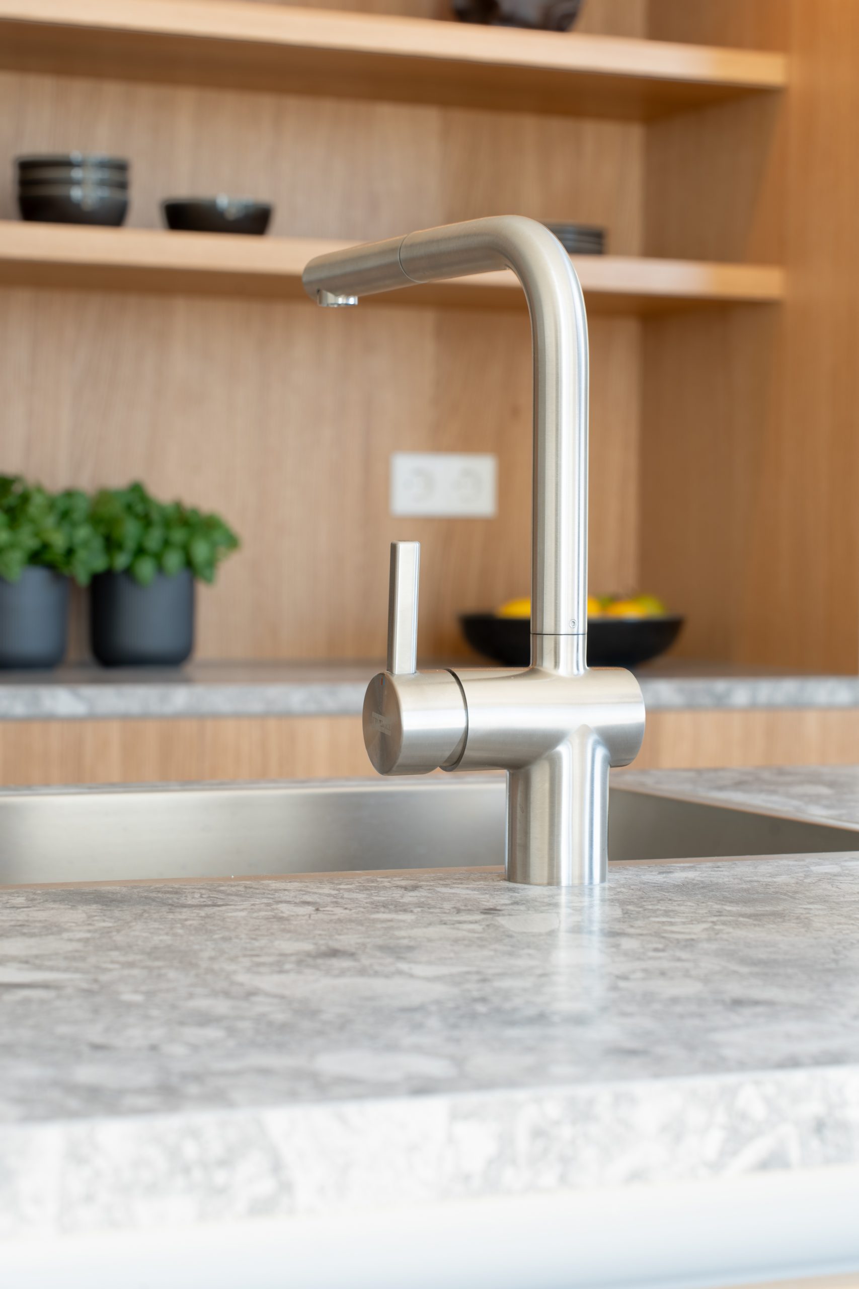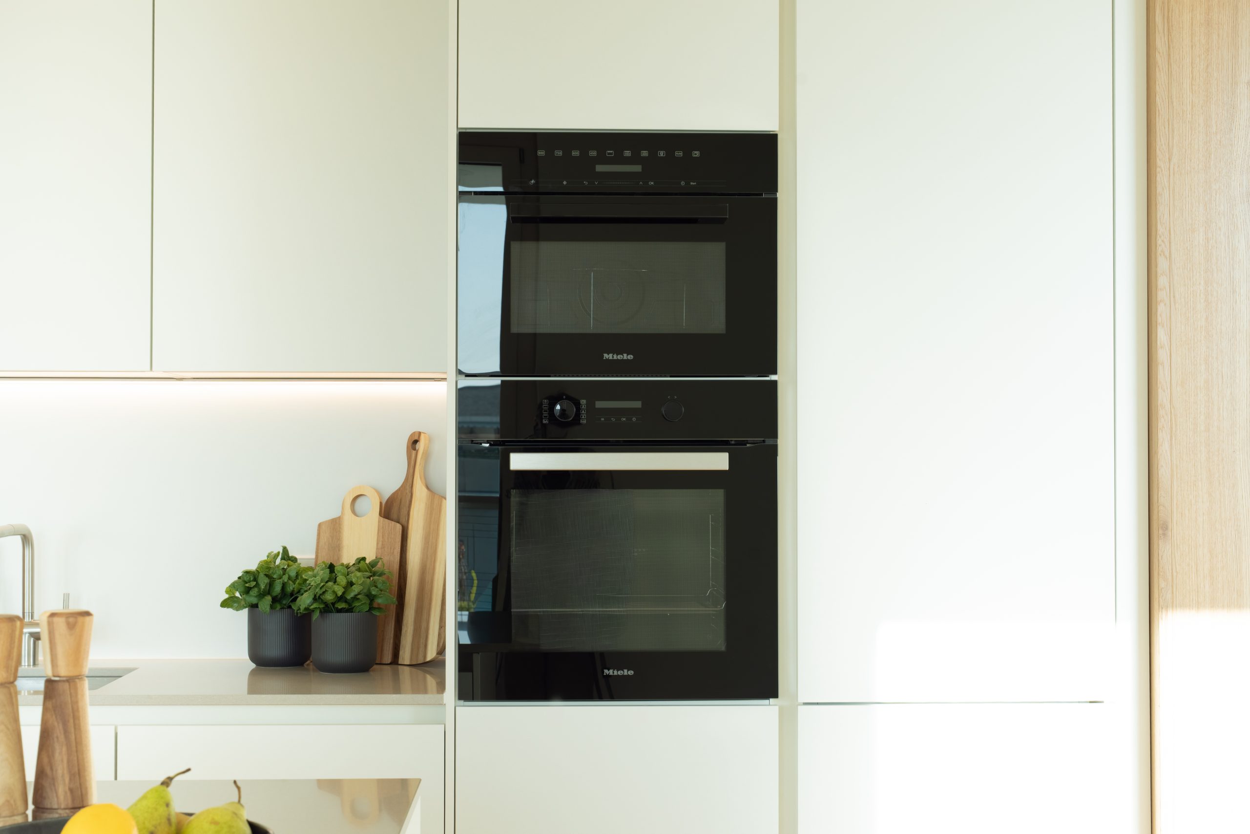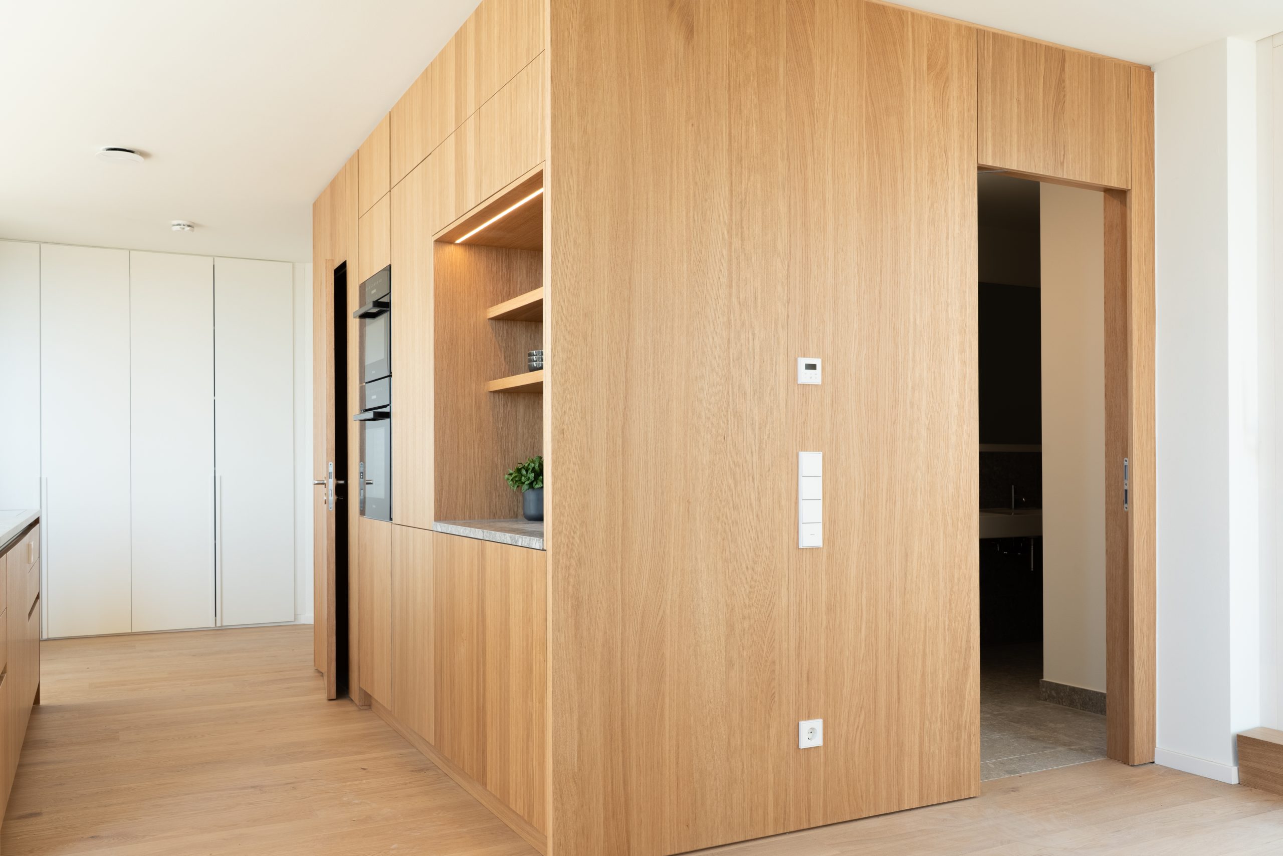 50 individuelle Wohnungen. 50 Küchen. Komplett geplant, geliefert und vollständig montiert. Ein besonderes Highlight ist die Echtholz-Wandverkleidung für eine hochwertige, individuelle Anmutung im Innenausbau, die wir in Zusammenarbeit mit einer regionalen Tischlerei umgesetzt haben. Von hoher Qualität zeugen die Natursteinarbeitsplatten, die ebenen Übergänge zur Spüle und Kochfeld sowie die harmonische Abstimmungen der Oberflächen, Dekore und Lichtinstallationen.